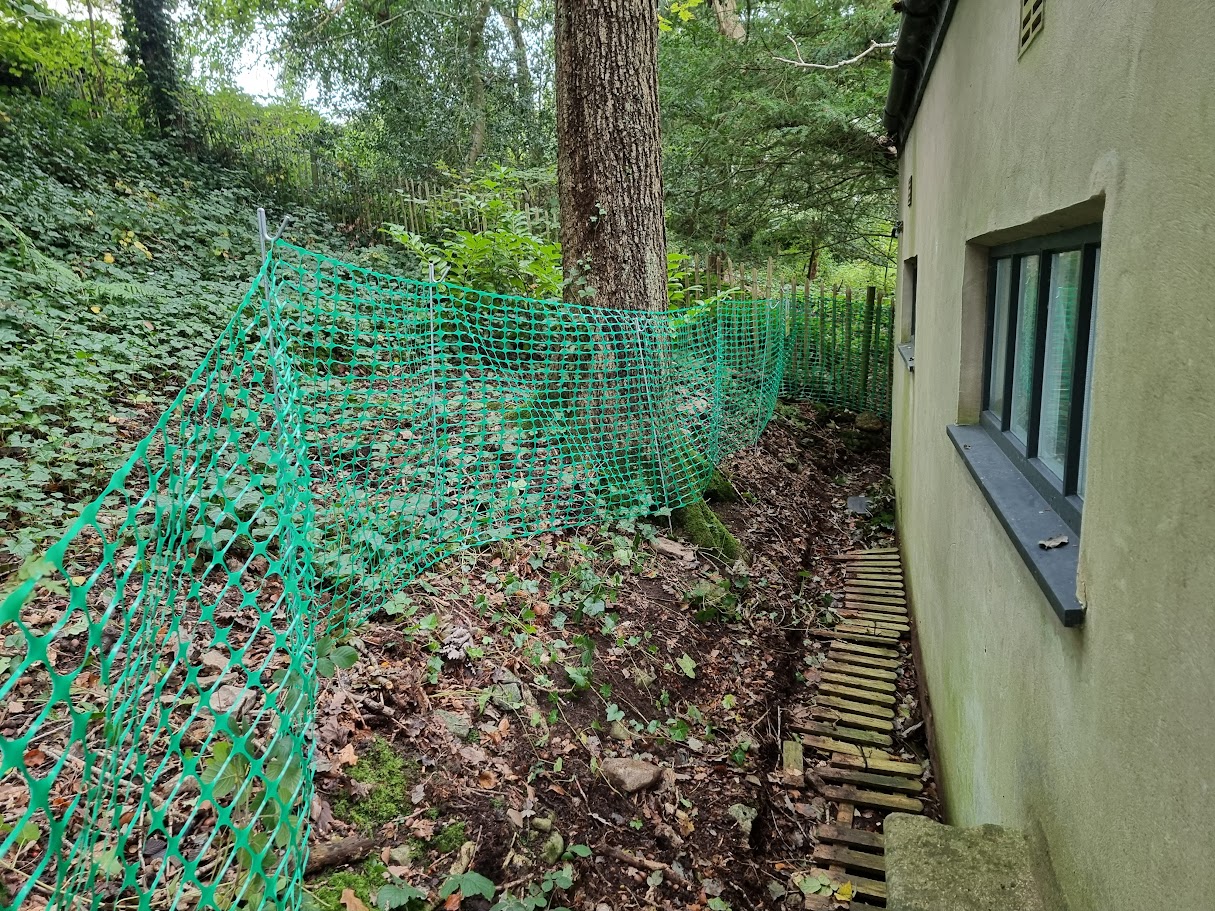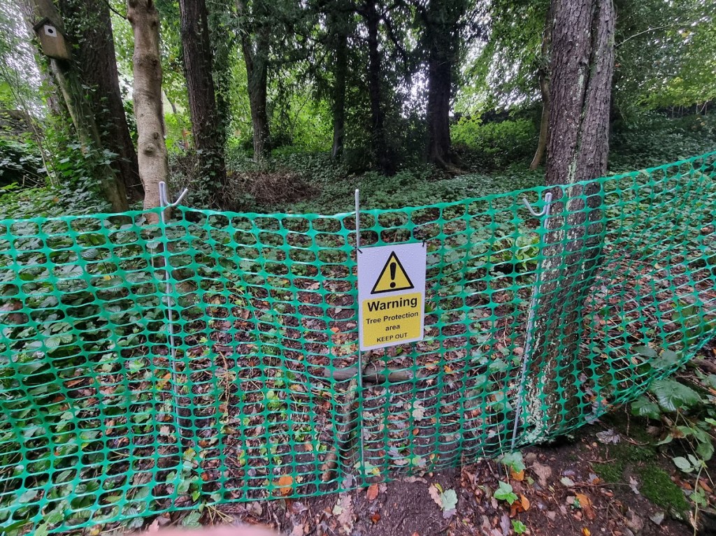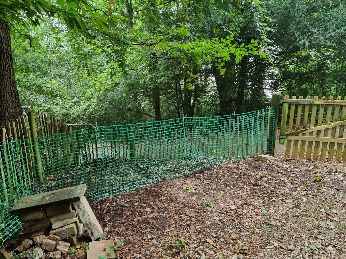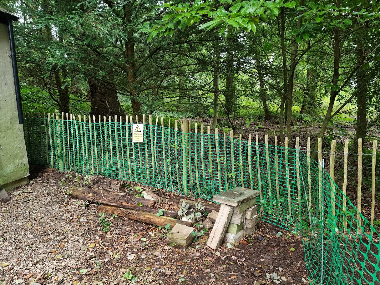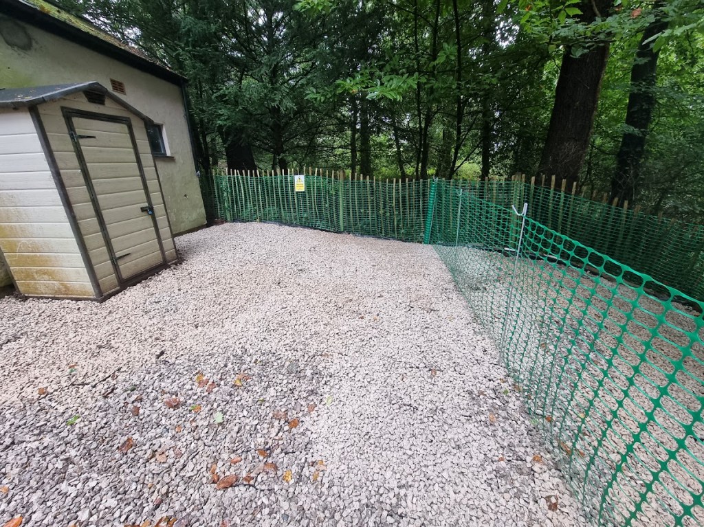 Next up was the netting to protect the woodland. The local council had requested Heras fencing, but it just wasn’t viable in such a tight space, so we opted for netting instead to get the job done effectively.
