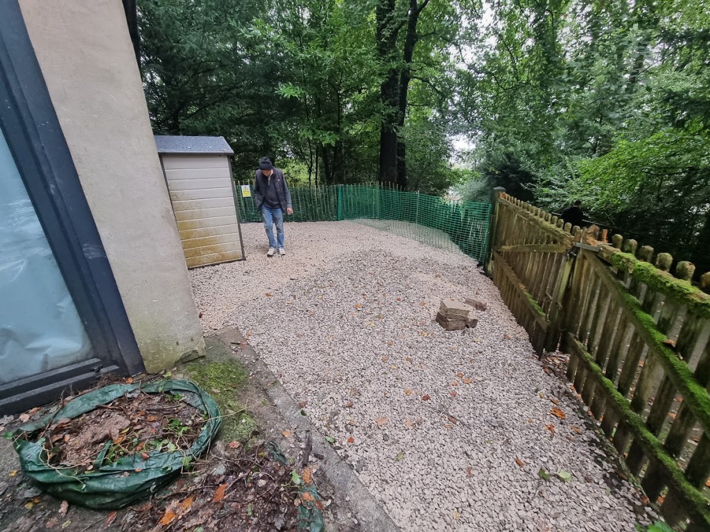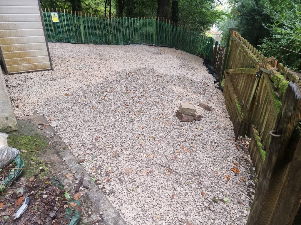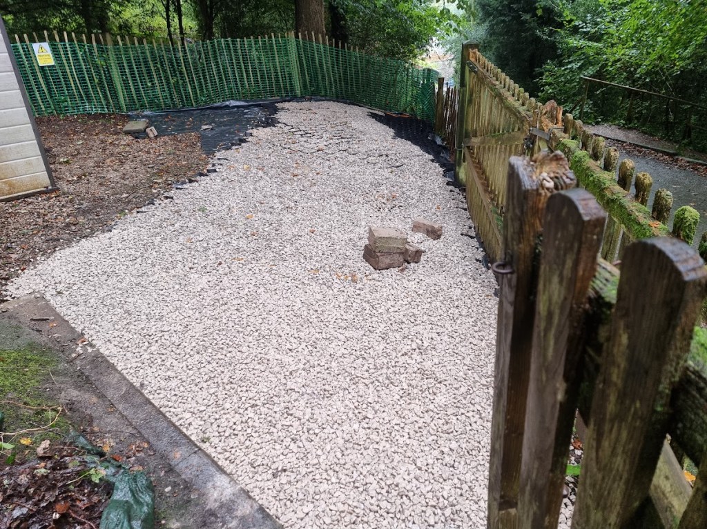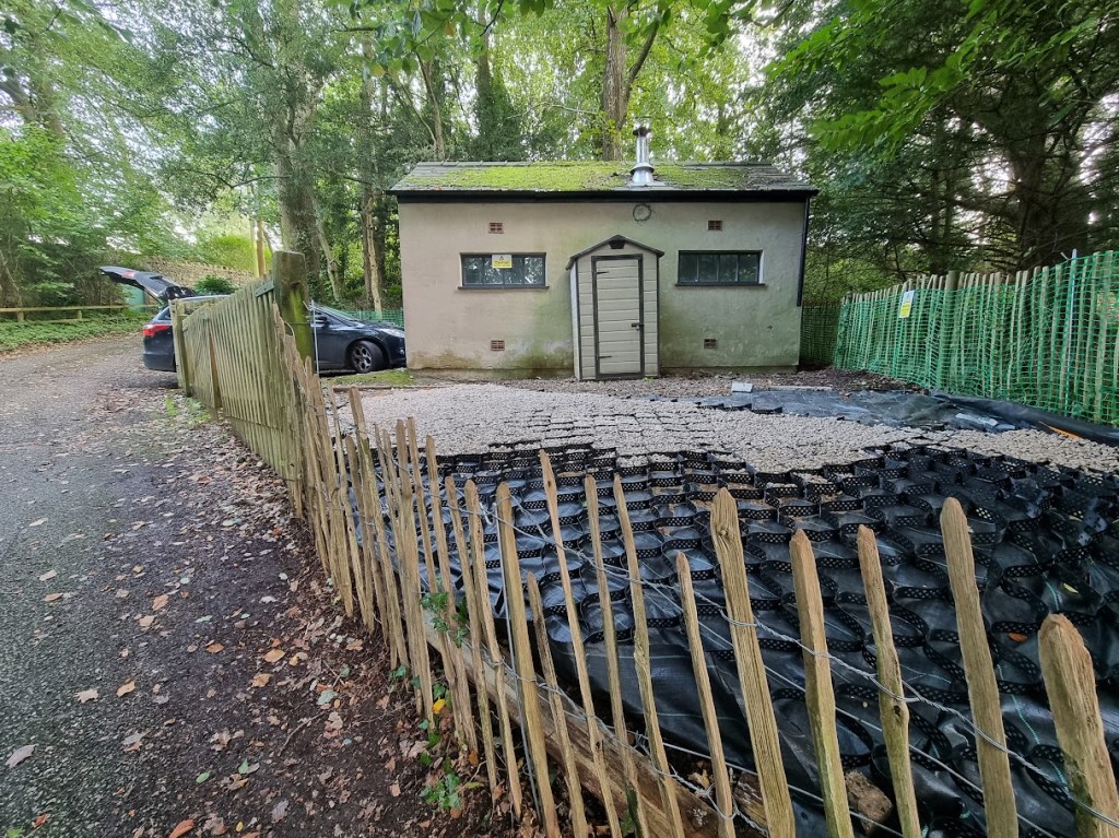 The ground where we worked needed to be protected with up to 4 inches of 20mm limestone aggregate, placed within a protective honeycomb structure to prevent the stones from shifting or becoming too thin. This was done to safeguard the roots of the surrounding trees and ensure they weren’t damaged during the work.