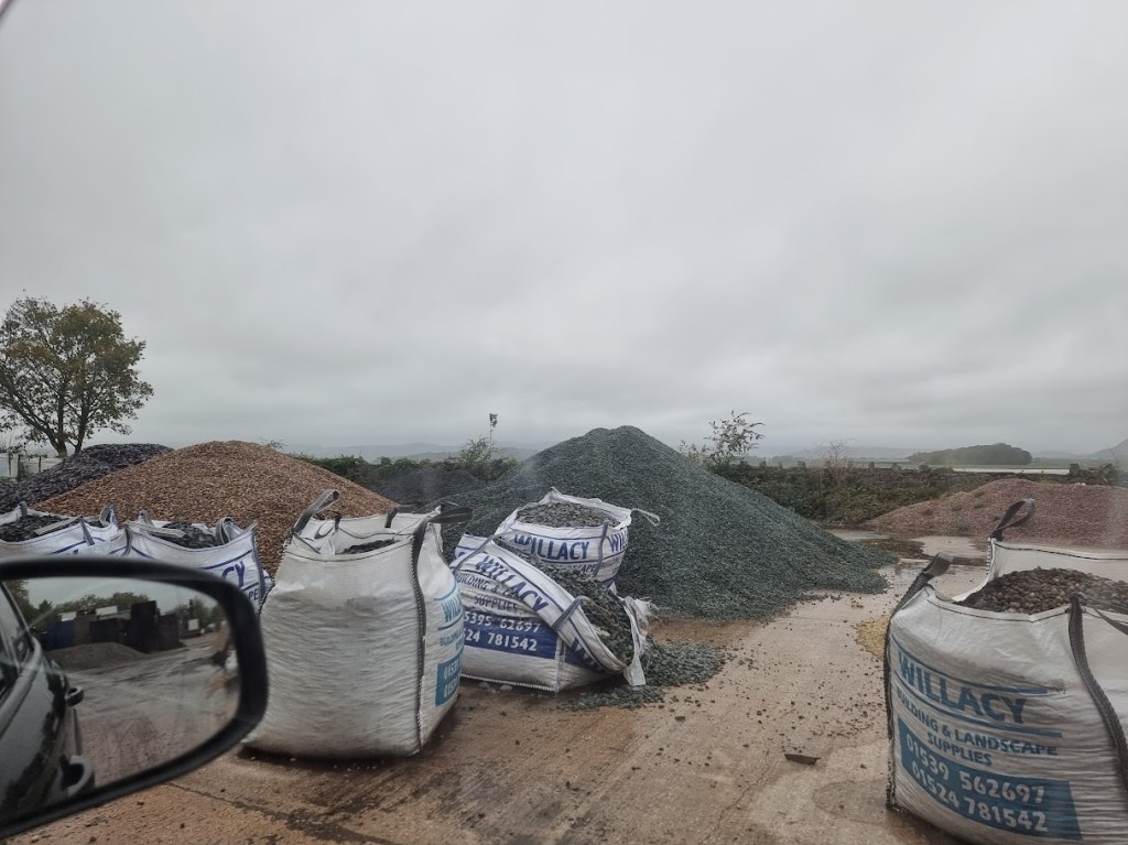 We then made a short trip to collect the limestone and caution signs. The job was done 15 bags at a time, requiring about a dozen trips in total. Large loads weren’t an option, so we had to manage with smaller, more manageable amounts.