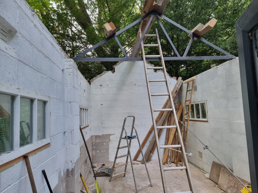 Step by step, we carefully removed the 20 tons of rubble by hand, keeping everything neat and tidy as we transported it back to the skips. We managed to recycle almost everything—the metal, the wood, and the beams. The only items we couldn’t save were the roof tiles, as they were more fragile than expected and not slate as originally thought.